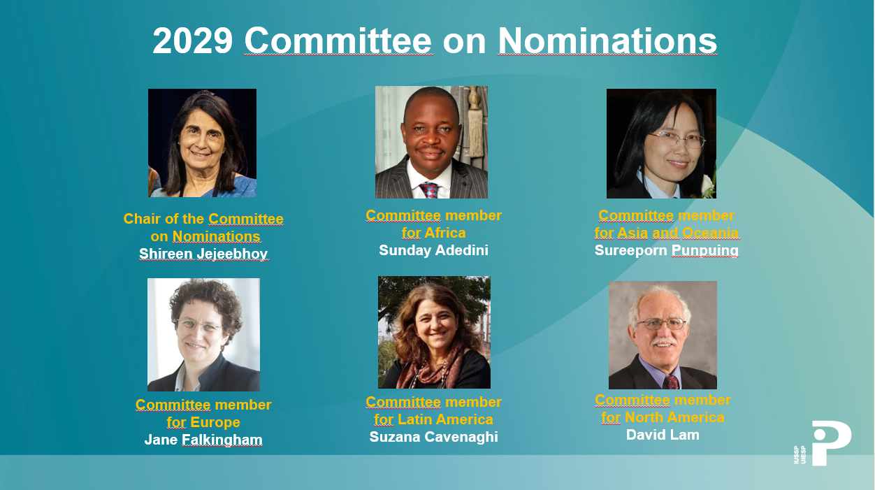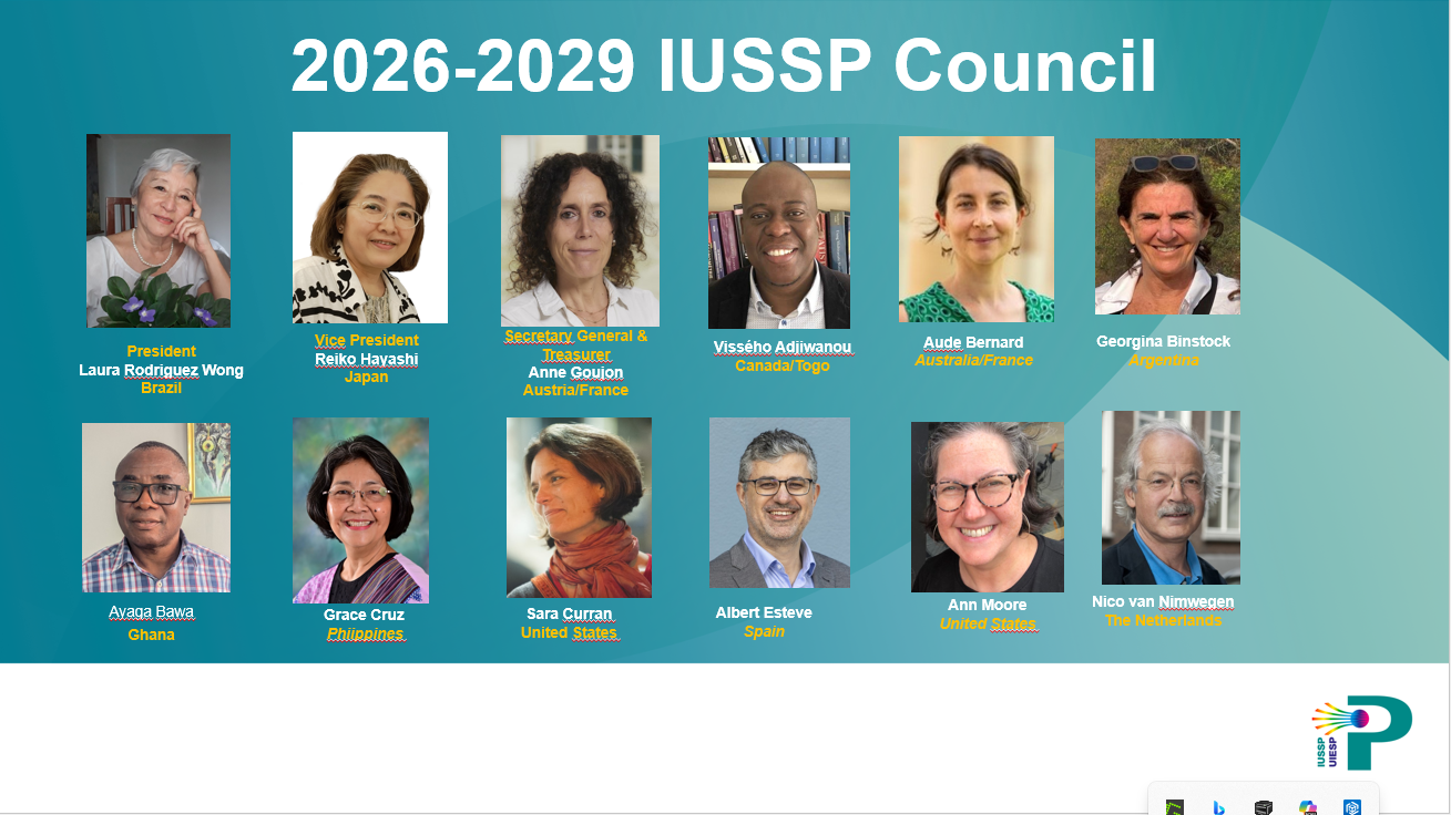 La nouvelle présidente, Laura Wong, a présenté le  Conseil 2026–2029 et le Comité de nomination 2029, et a souhaité la bienvenue à Shireen Jejeebhoy en tant que présidente d'honneur. Elle a souligné l'importance de l'engagement des membres, le rôle central des comités scientifiques et les préparatifs du centenaire de l'UIESP en 2028. Elle a encouragé les jeunes démographes à proposer de nouvelles initiatives de comités et à contribuer à façonner l'avenir de l'Union.